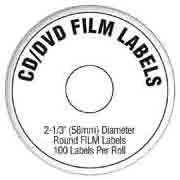 100 - CD / DVD LABELS DIE CUT FILM LABEL / ROLL ( 2 1/3" DIAMETER ) |